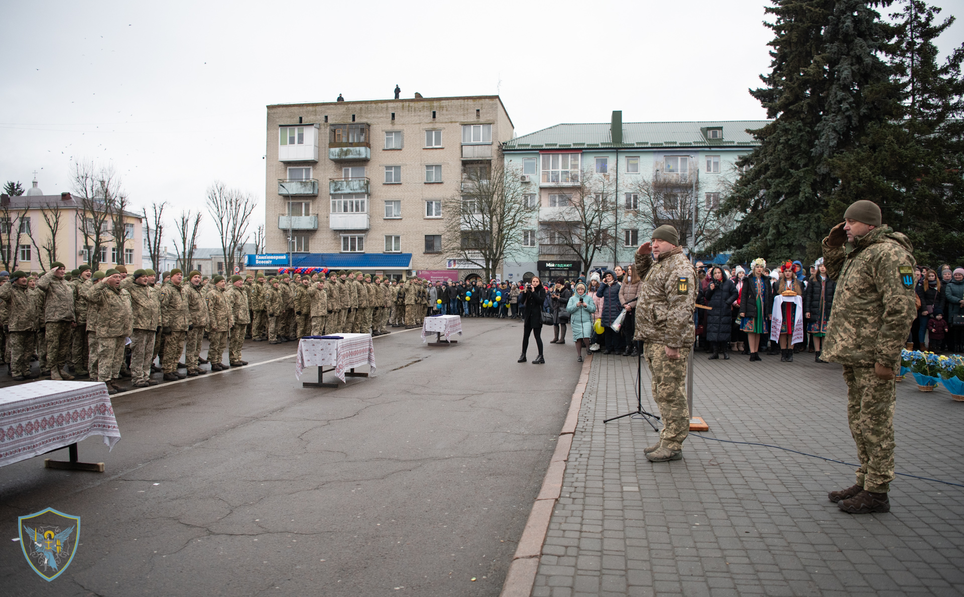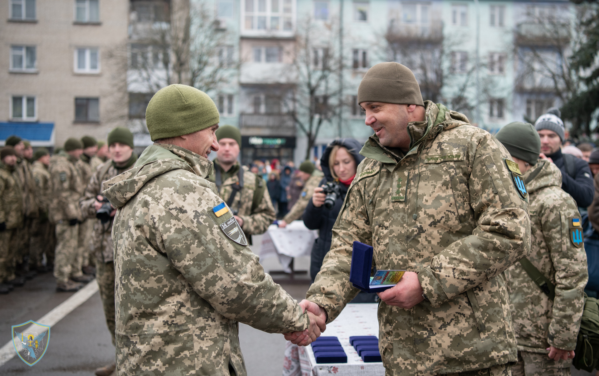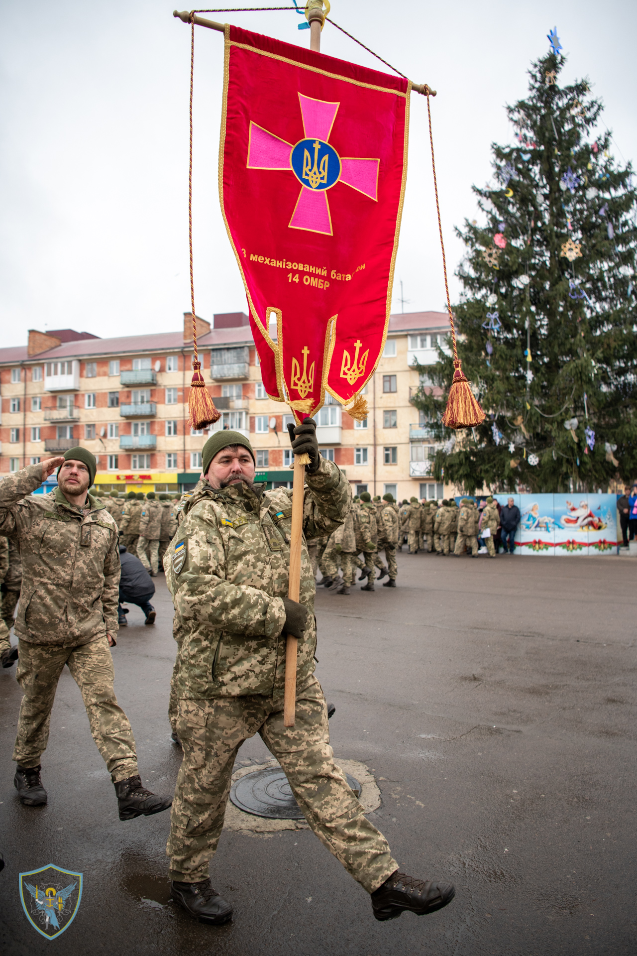 Військовослужбовці 14 омбр на чолі із командиром бригади полковником Сергієм Войченком та т. в. о командувача військ оперативного командування «Захід» генерал-майором Олегом Мікацем вишикувались на площі Героїв міста.