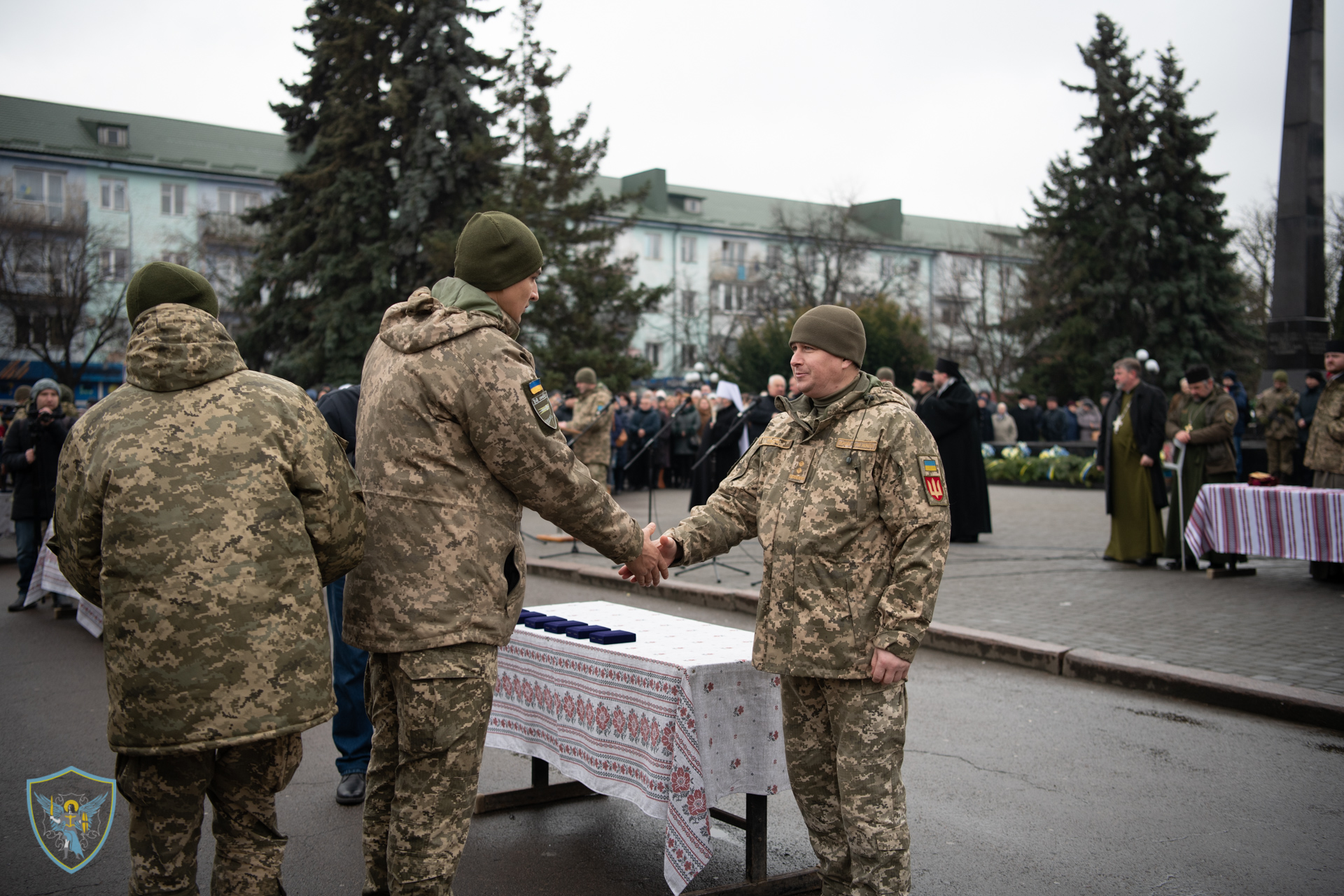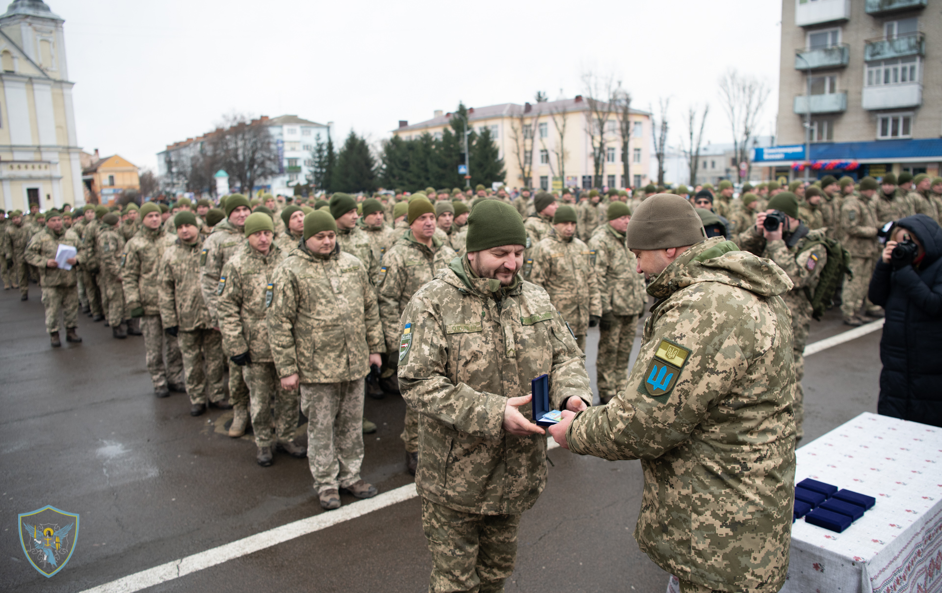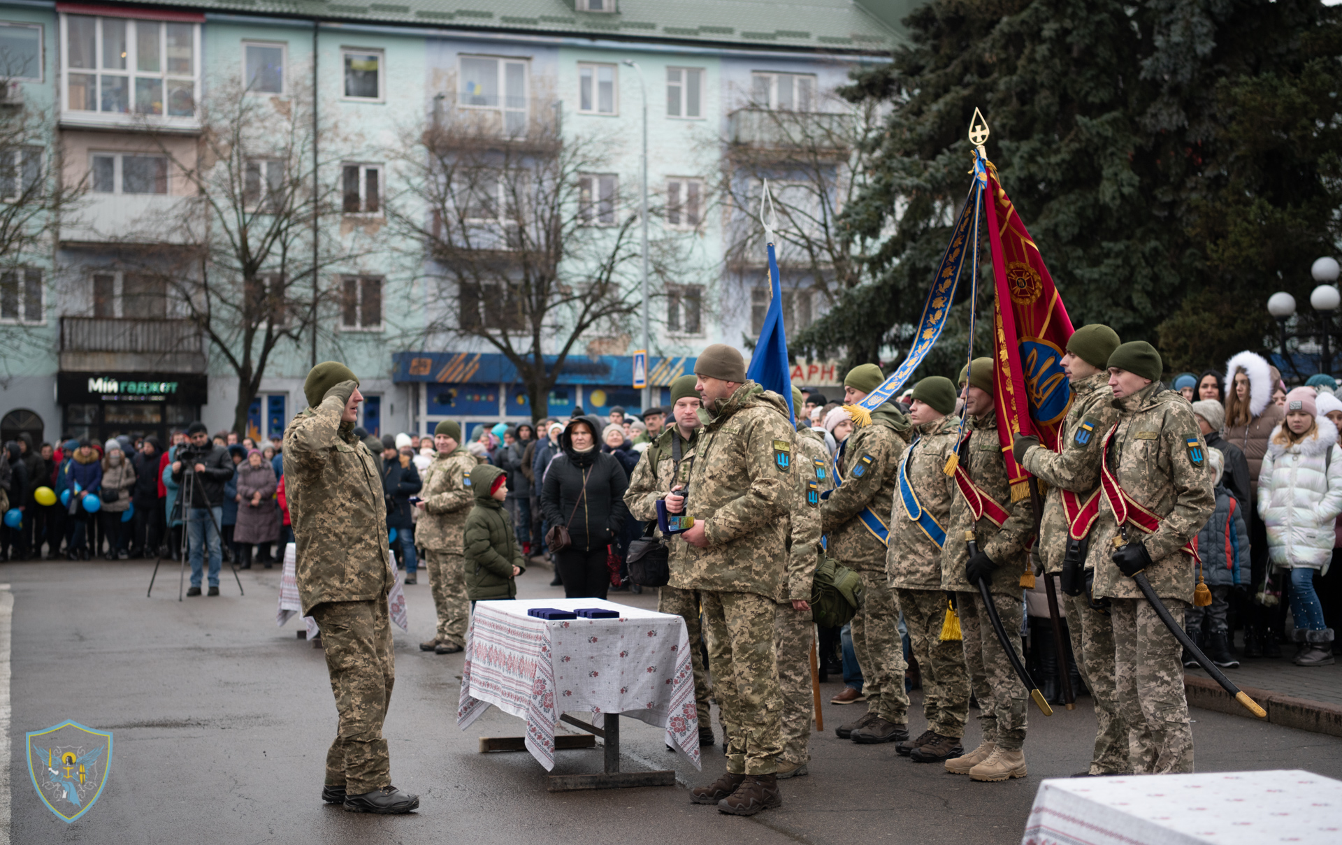 Військовослужбовці 14 омбр на чолі із командиром бригади полковником Сергієм Войченком та т. в. о командувача військ оперативного командування «Захід» генерал-майором Олегом Мікацем вишикувались на площі Героїв міста.