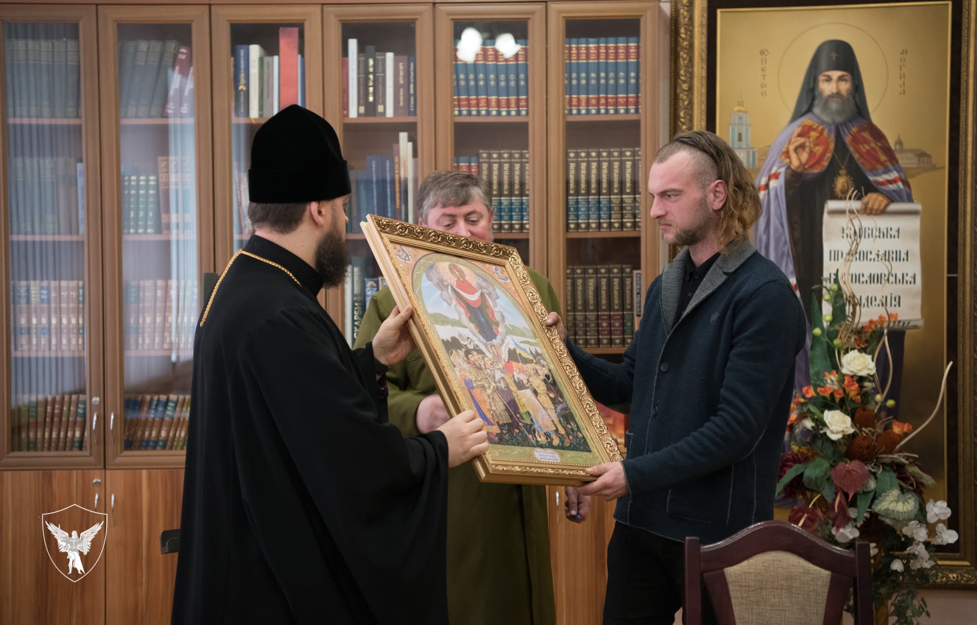 Прот Тарас Мельник від імені усіх капеланів подарував ікону Покрови Воїнської, де поруч із захисниками України різних періодів зображено й Героя Небесної Сотні. Отець Тарас говорить, що ця ікона є свого роду тим омріяним пантеоном, де вміщено пам’ять про багатьох славних нашого народу.