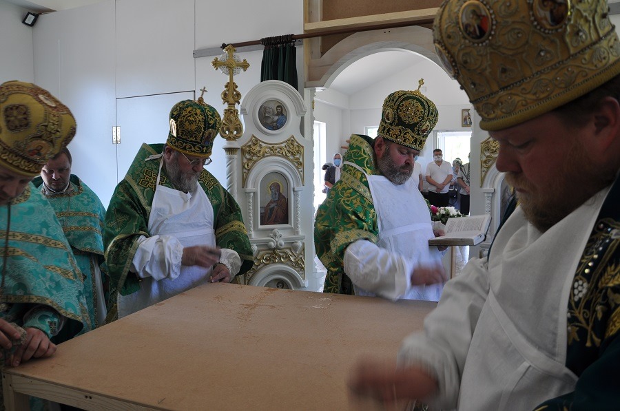 Парафіяни зустрічали хлібом та квітами архієпископа Сумського і Охтирського Мефодія, єпископа Харківського і Богодухівського Митрофана та єпископа Запорізького і Мелітопольського Фотія. Розпочалися богослужіння у новозбудованій церкві з чину освячення храму та престолу, після якого відбулась Божественна літургія за участі священників Харківської і Сумської єпархій, у присутності велелюдної громади із мешканців та гостей міста.