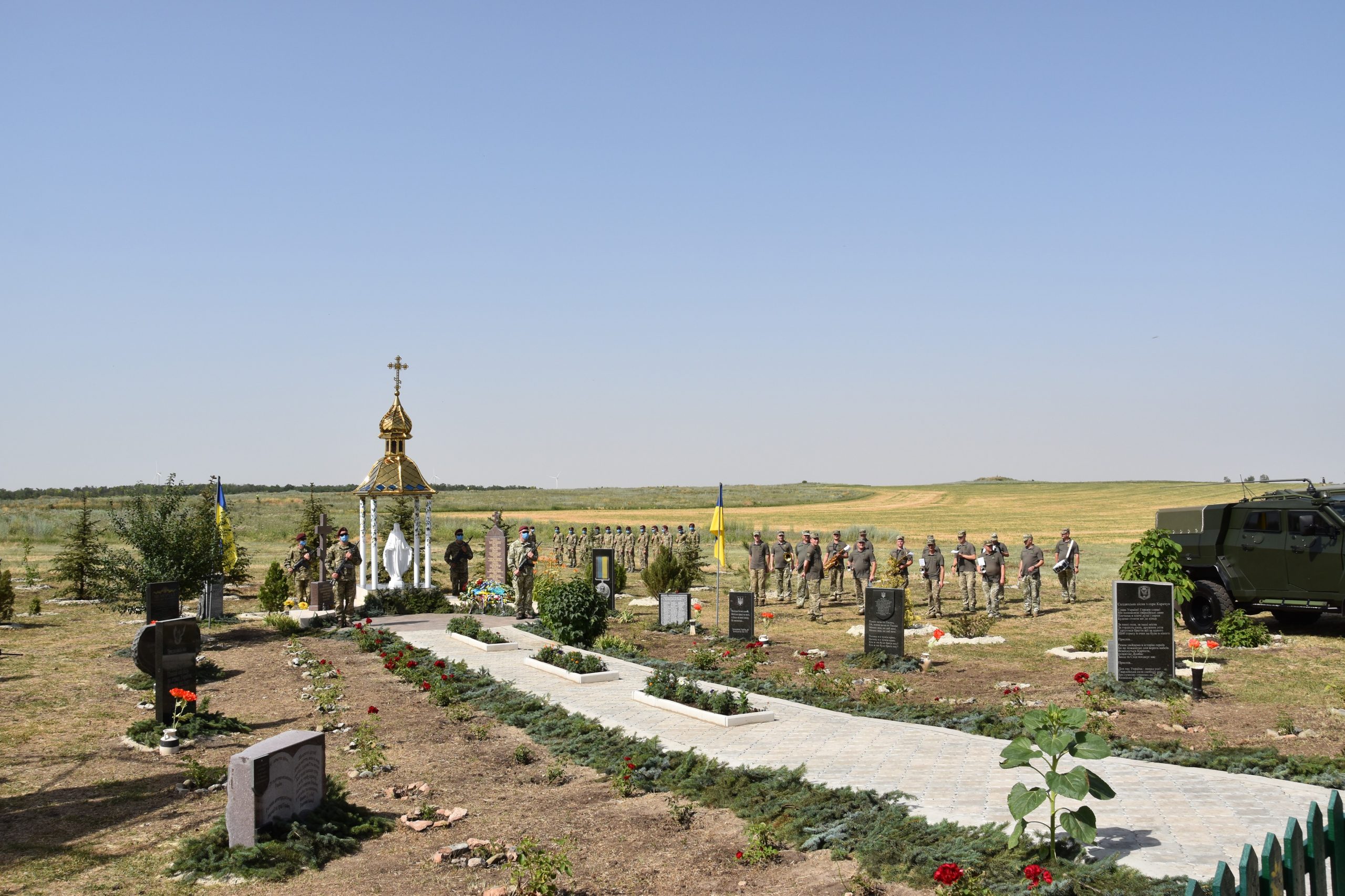 Урочиста частина відбулась на горі Карачун. Також до меморіального комплексу загиблим учасникам АТО на горі Карачун капелани поклали квіти щоб вшанувати полеглих українських бійців.