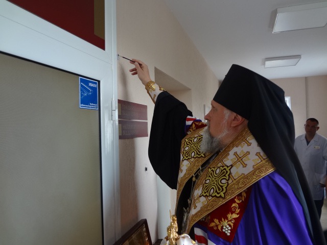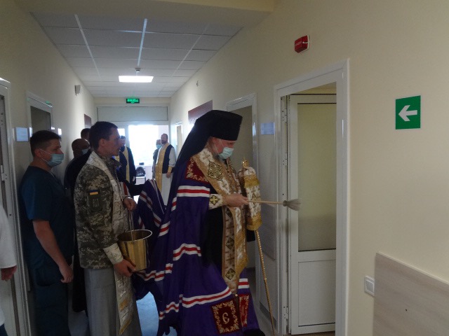 Владика звершив чин освячення, під час якого окропив святою водою всі приміщення нової клініки. Архієпископ Михаїл подякував військовим медикам за їхню невтомну працю, яку вони несуть заради спасіння життів наших славних воїнів та подарував ікону Пресвятої Богородиці.