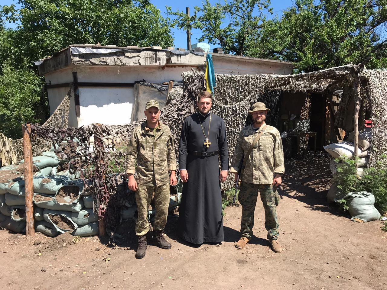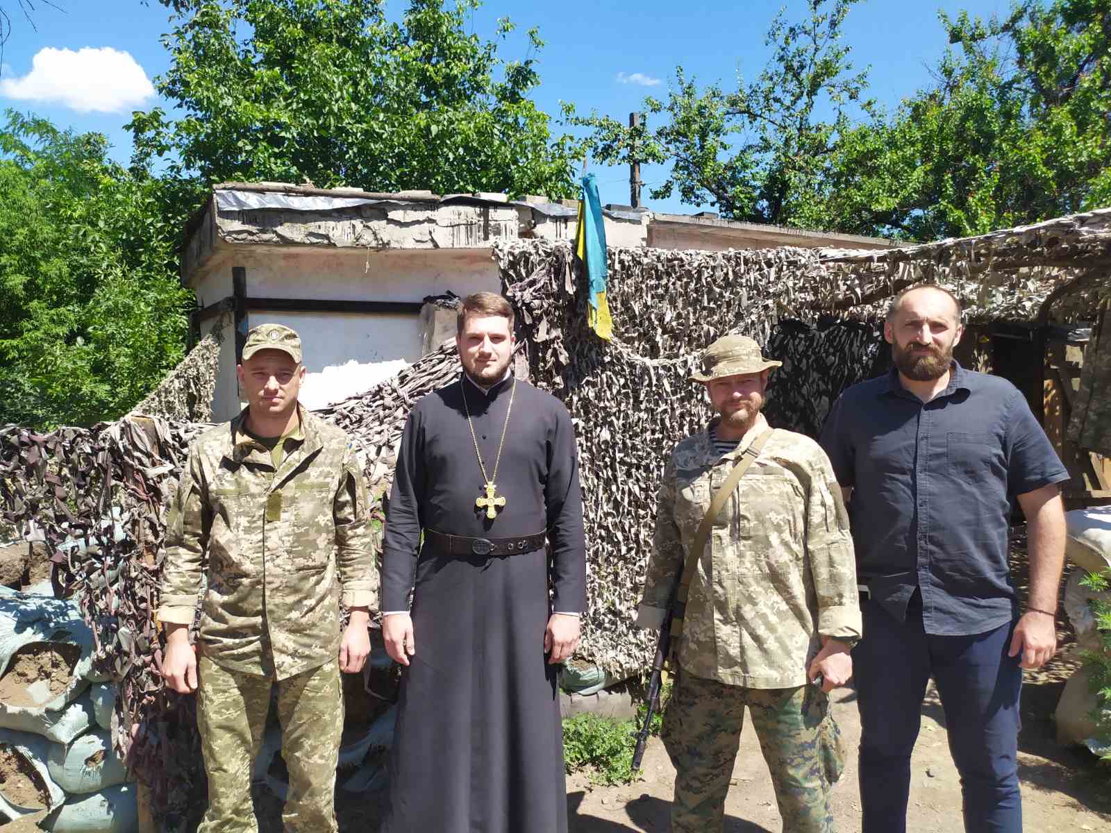Пізніше архімандрит Софроній разом з військовими помолилився за здоров’я та Божу допомогу у захисті Батьківщини, а також пом’янув загиблих захисників України. На прохання бійців о. Софроній освятив військову техніку та місця, де вони несуть службу. Військовослужбовцям також була передана частина гуманітарного вантажу, яка складалася із продуктів, води та необхідних у військовому побуті речей.