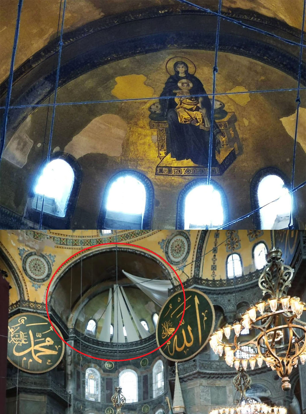 Мозаїки Богородиці та Архангела Гавриїла відповідно 6,5 та 7,5 метрів будуть сховані та закриті завісами, повідомляє Orthodoxtimes.com. Одна з вимог ісламу – відсутність людських образів в місцях поклоніння.