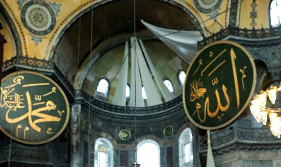 Губернатор Стамбулу Алі Єрлікая заявив, що Софія готова до мусульманської молитви – Православні ікони Ісуса Христа та Богородиці місцева влада вирішила закрити білими простирадлами.