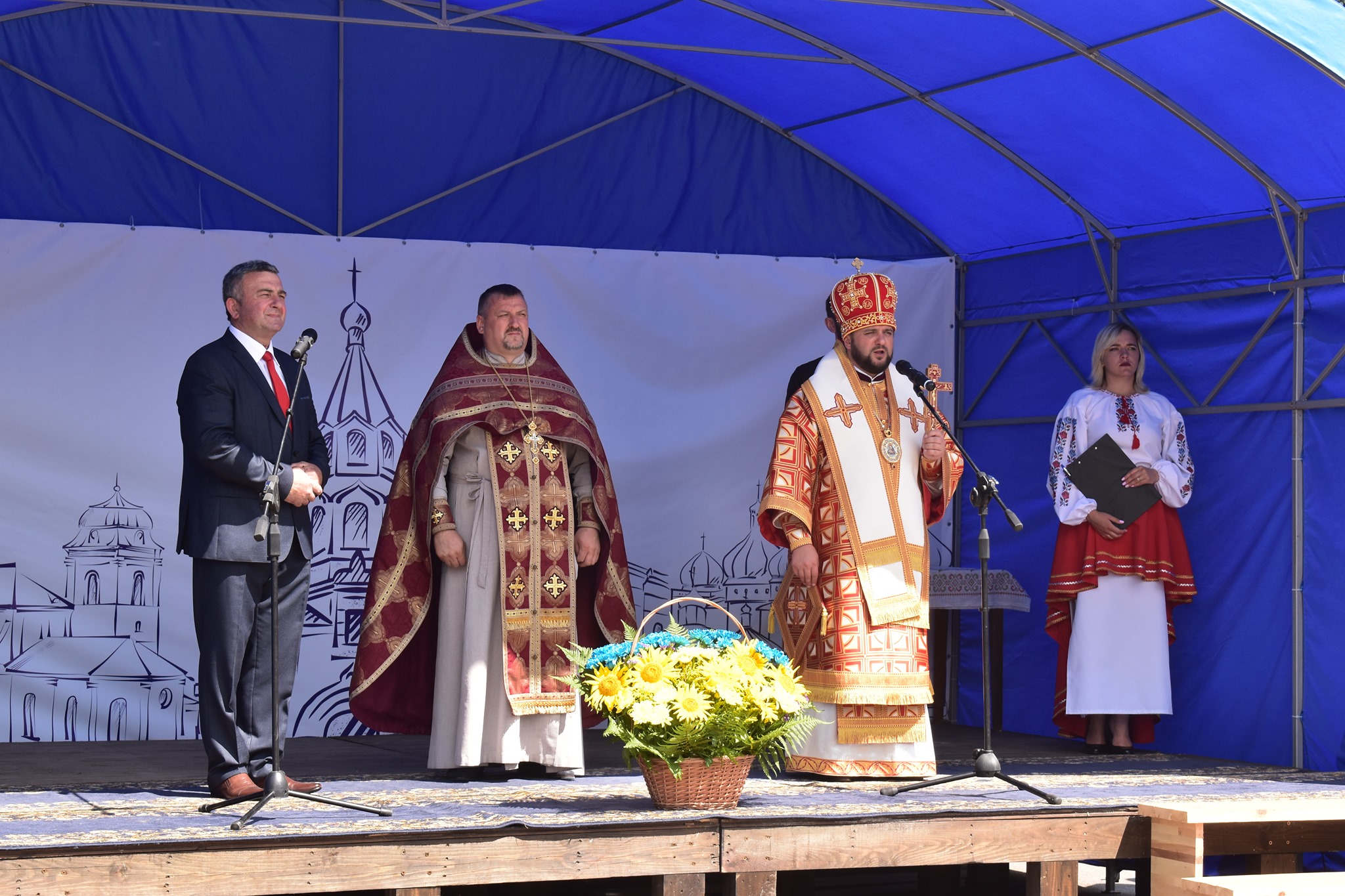 Рівно рік тому на місці, де зараз встановлений пам’ятний знак, очільник Православної церкви України Епіфаній освятив наріжний камінь та розповів, що бачить майбутній пам’ятник у вигляді документа у формі сувою, повідомляє, Суспільне.