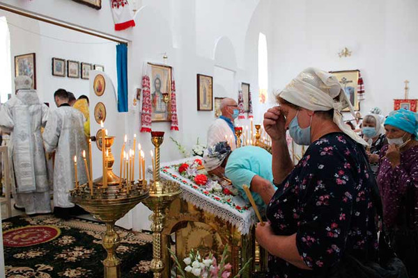 Архієпископу Федору співслужили настоятель, благочинні та духовенство Полтавської єпархії. Під час богослужіння керуючий єпархії нагородив настоятеля правом носіння хреста з прикрасами.