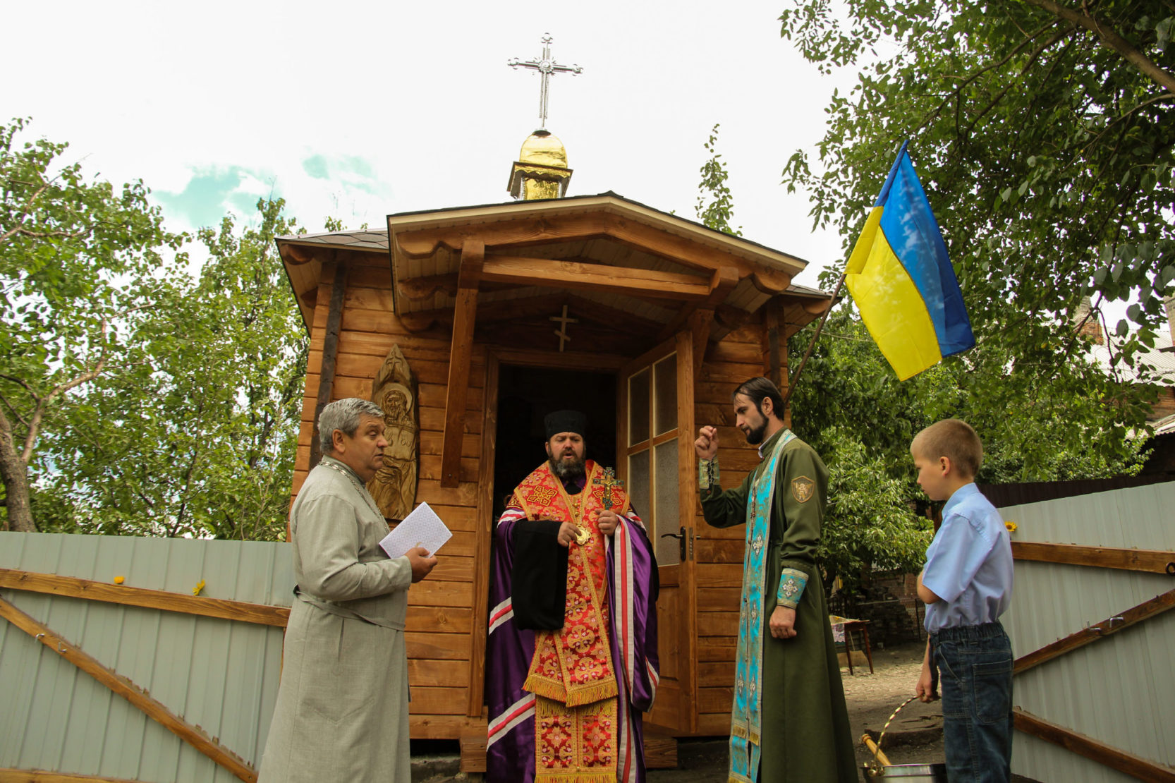 На Луганщині у Лисичанську військові капелани Православної Церкви України освятили 12-ту каплицю, яку збудували волонтери з Івано-Франківщини. Капличка має всередині гуцульські ікони.