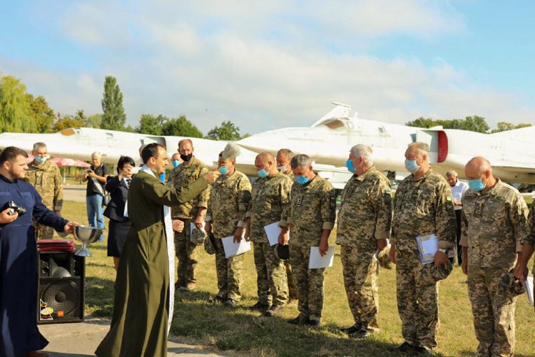 Капелан ПЦУ отець Андрій Гуль благословив присягу на вірність українському народові курсантів кафедри військової підготовки Національного авіаційного університету.