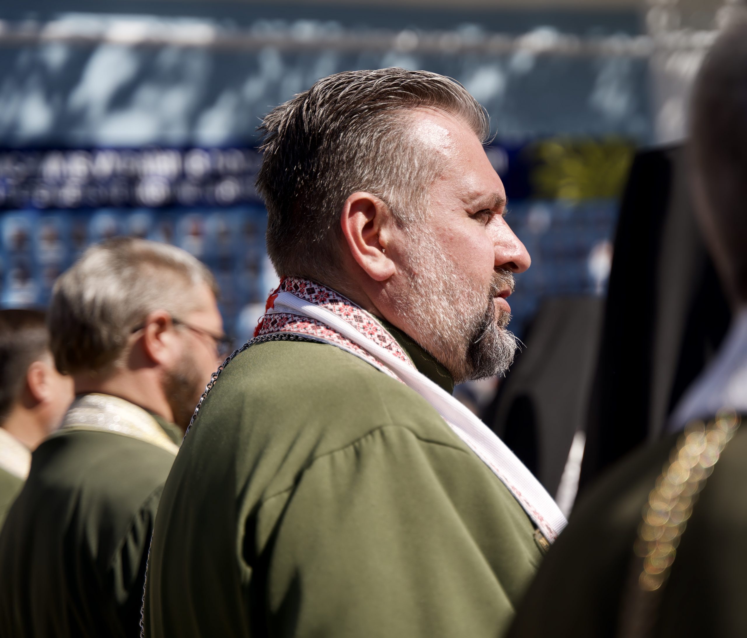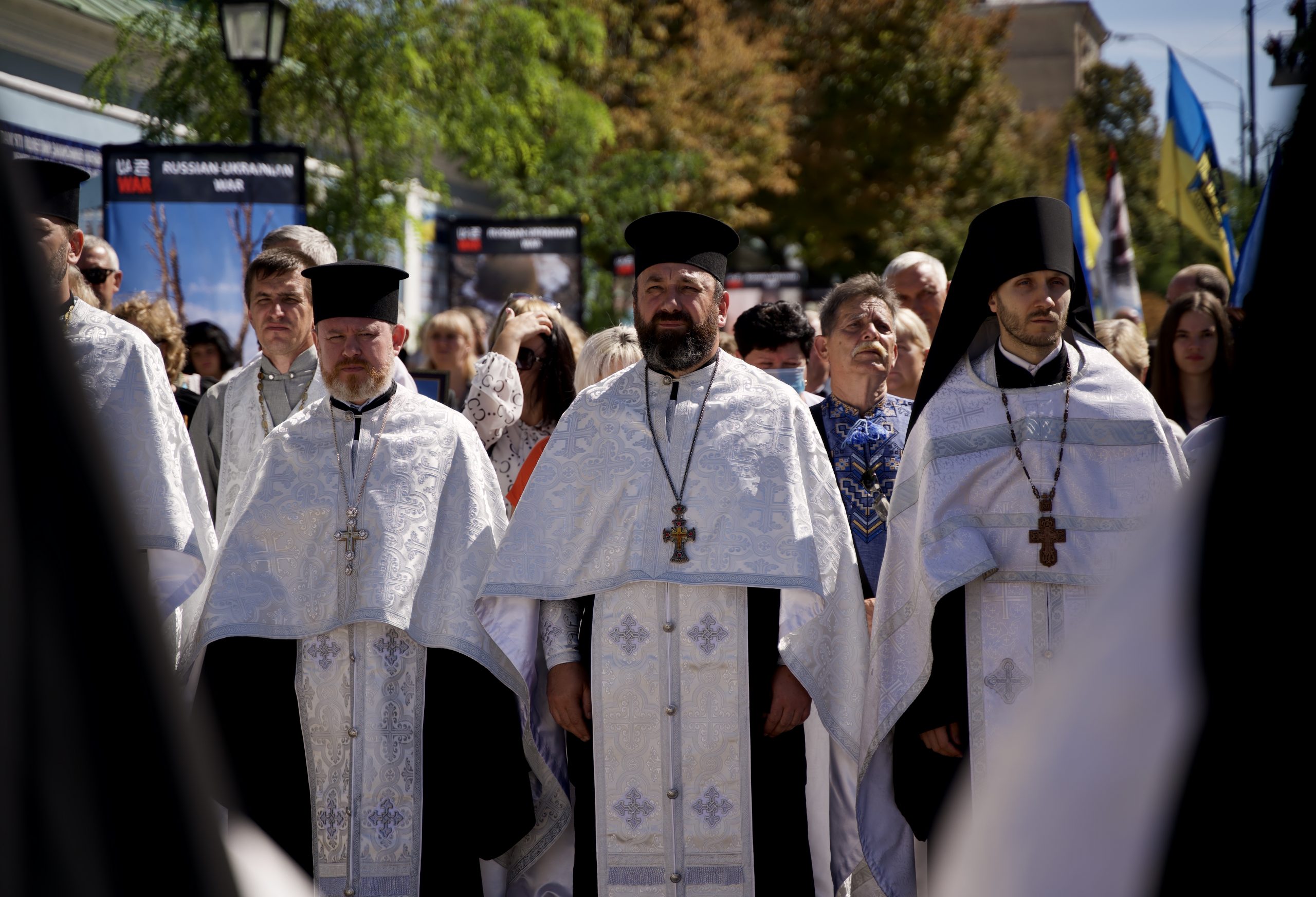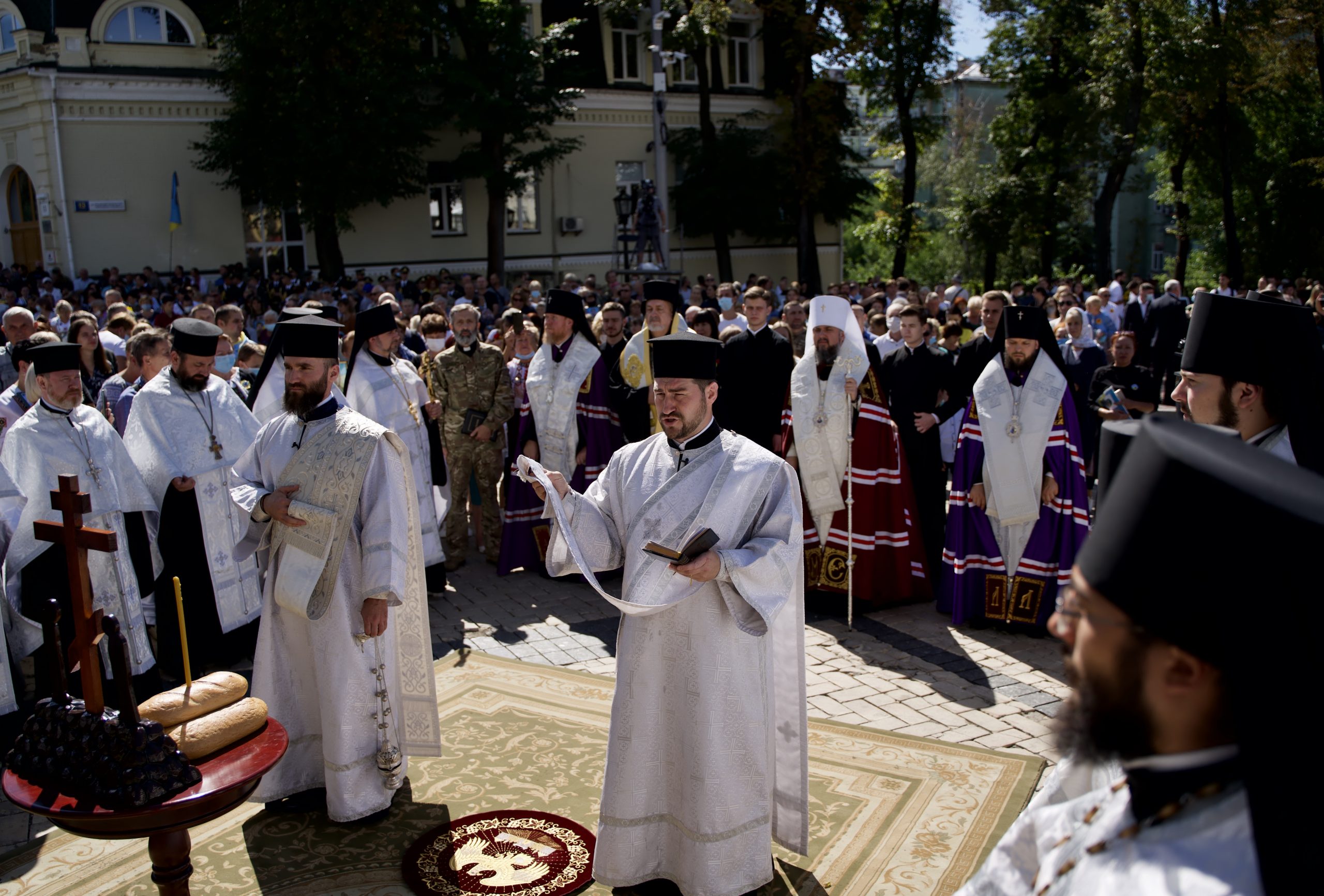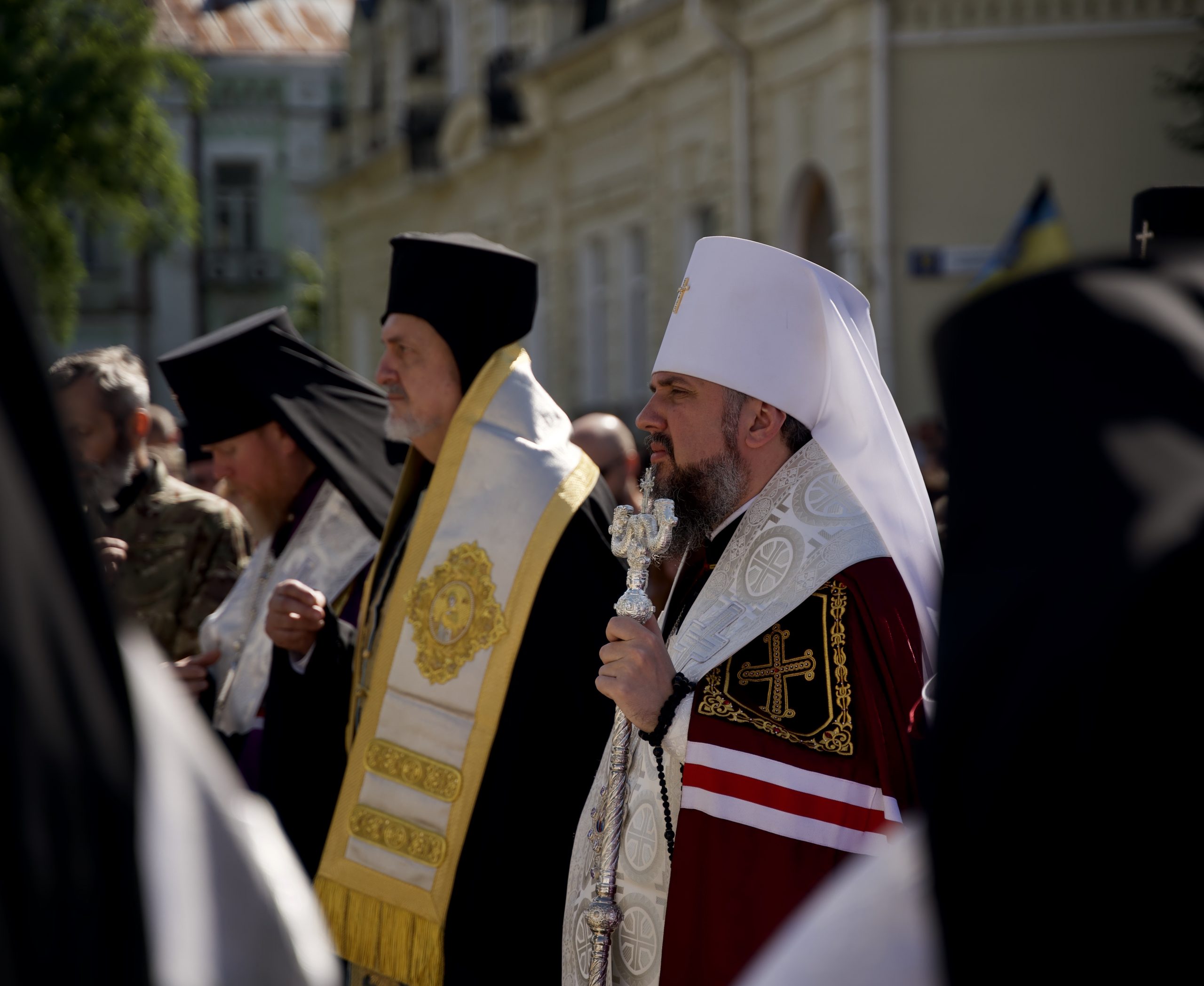 Предстоятелю ПЦУ співслужили митрополит Гальський Еммануїл, архієпископ Агапіт, архієпископ Чернігівський і Ніжинський Євстратій, капелани ПЦУ та численне духовенство та монахи Михайлівського монастиря. На молитву прийшли матері вбитих військових із портретами своїх синів, побратими, рідні та друзі.