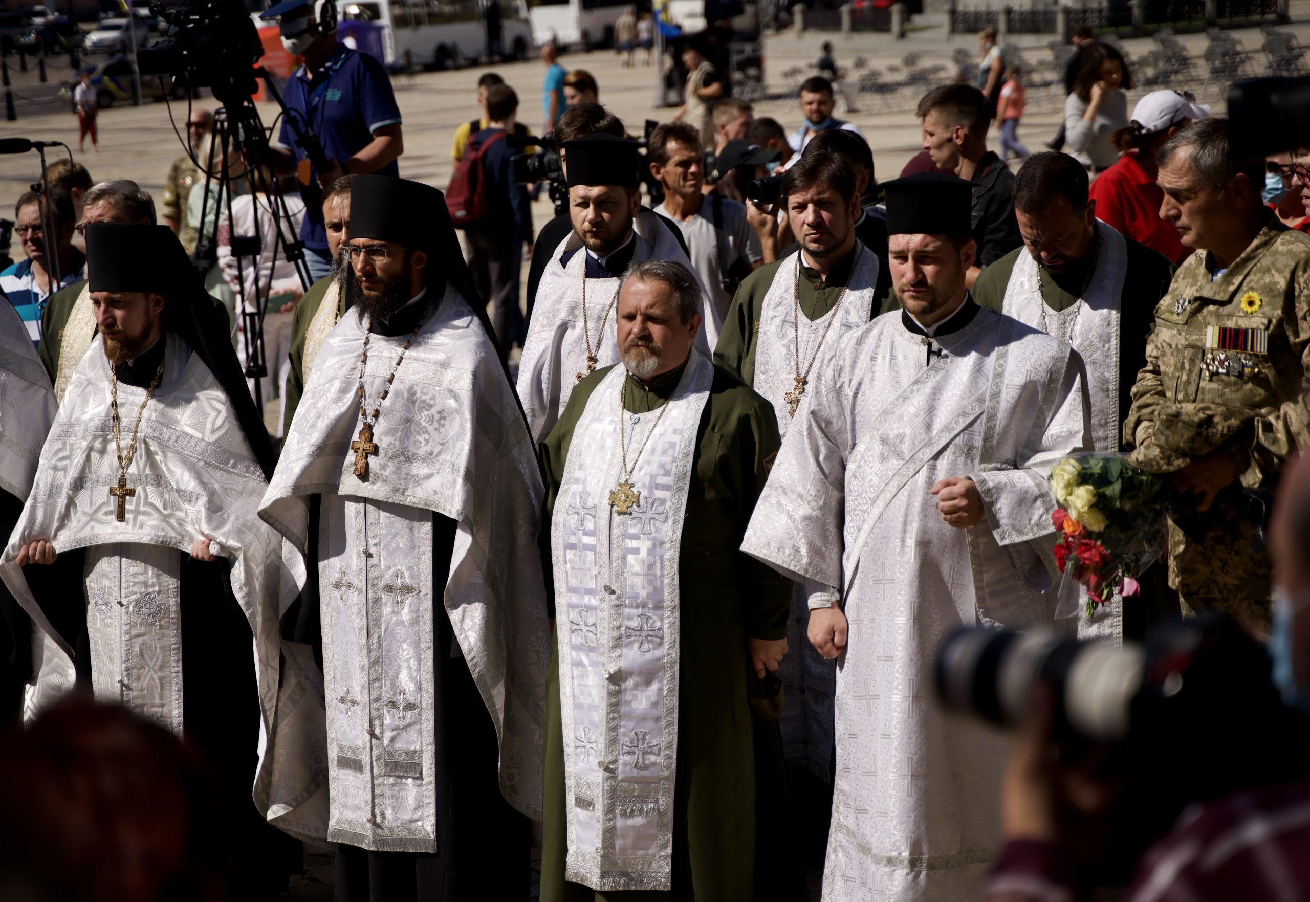 Біля меморіалу «Стіна пам’яті полеглих за Україну» 29 серпня предстоятель Православної Церкви України Митрополит Київський та всієї України Епіфаній звершив панахиду за спокій душ українських військовослужбовців, що життя своє поклали за Україну.