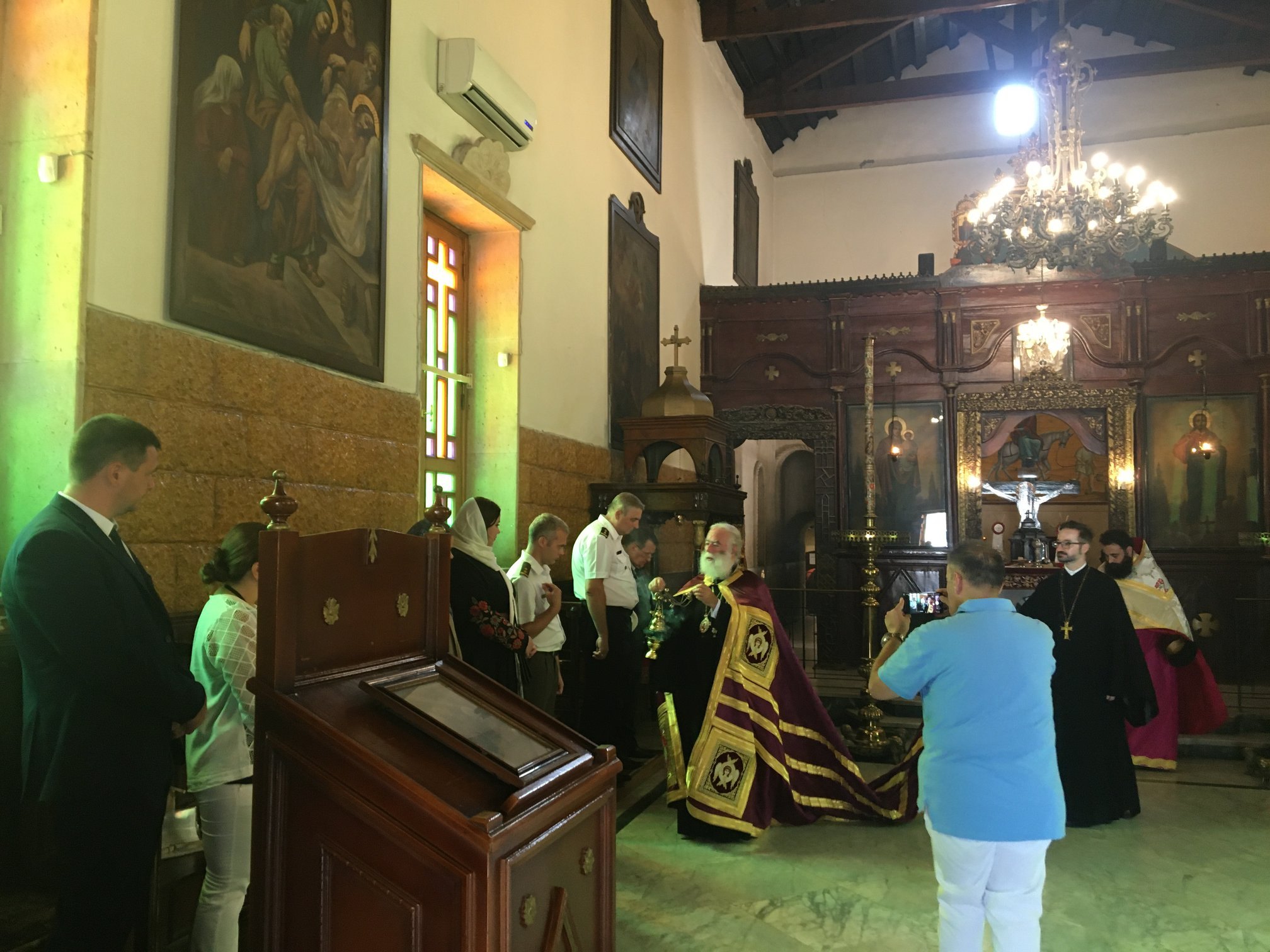 У церемонії взяли участь Блаженніший Папа і Патріарх Александрійський і всієї Африки Феодор ІІ та настоятель монастиря Св. Георгія у Каїрі Високопреосвященний Архімандрит Дамаскінос Аль-Азраї, які того дня відслужили урочисту літургію, Посол Євген Микитенко, дипломати посольства України у Каїрі, представники української та грецької громад Єгипту та запрошені єгипетські громадяни. Перед присутніми виступив керівник Військового аташату Посольства України у Каїрі полковник Олександр Чернов.