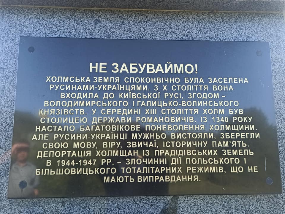 Довідка: «Пам’ятник жертвам терору і депортації українців Холмщини в 1938-1947 рр.» був встановлений у 2010 р. поблизу с.Тудорковичі Сокальського району на Львівщині.