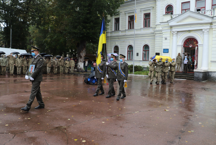 Труну с тілом курсанта напередодні було доставлено з Харкова. Сотні чернігівців прийшли попрощатися зі своїм земляком. На плацу Військово-музичного центру Сухопутних військ Збройних Сил України вишикувались військовослужбовці, які схилили голови в жалобі, проводжаючи свого побратима в останню дорогу.