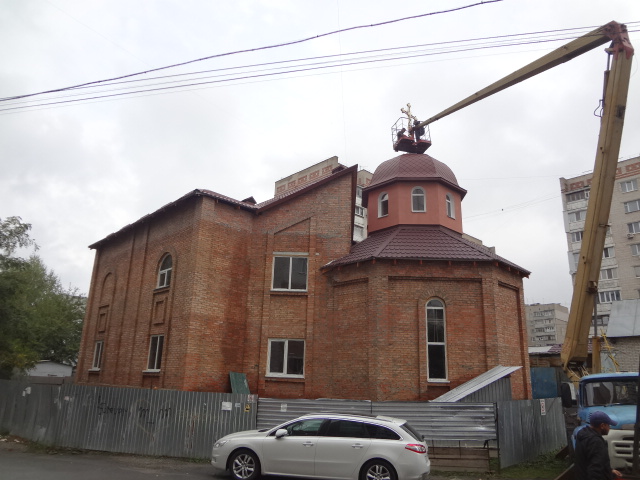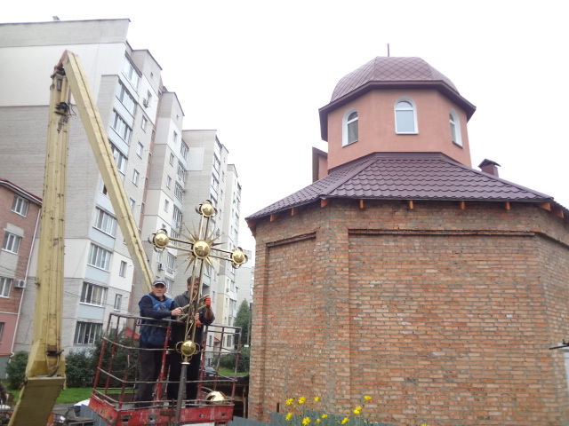 Після освячення хреста, його було вмонтовано на купол.