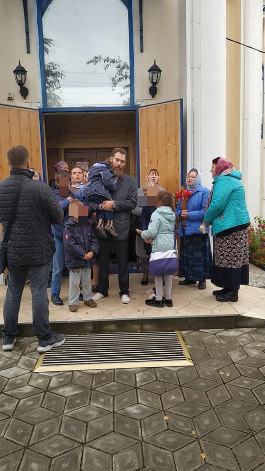 Вона виклала фото, де видно неповнолітніх людей та бородатих чоловіків. «На фото невідомі нікому люди з дітьми, яких привезли в село, захищати МПЦ від ПЦУ», – написала волонтерка.