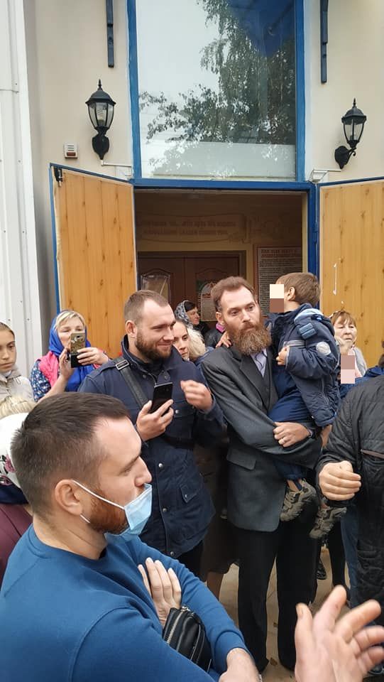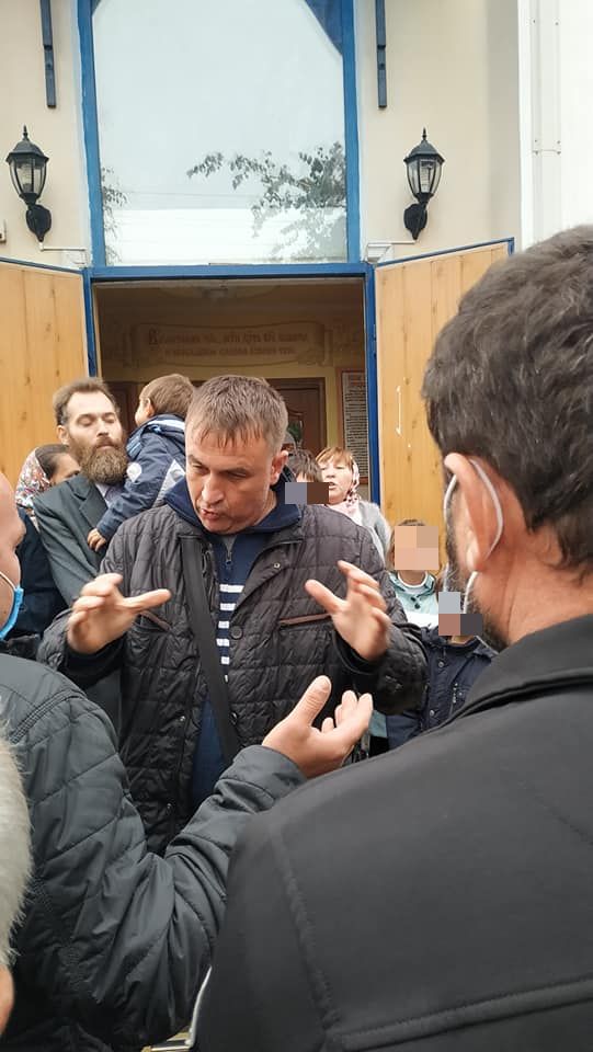 «Приїхав і голова районної держадміністрації, і поліція. Але …. ці невідомі люди з дітьми, яких привезли невідомо хто і звідки, стали живою стіною при вході до церкви і нікого не пропускають. Прямо їх сценарій “ми будемо стояти за спинами жінок і дітей”», – пише волонтерка, що допомагає добровольцям в зоні ООС Марина Пилипенко.