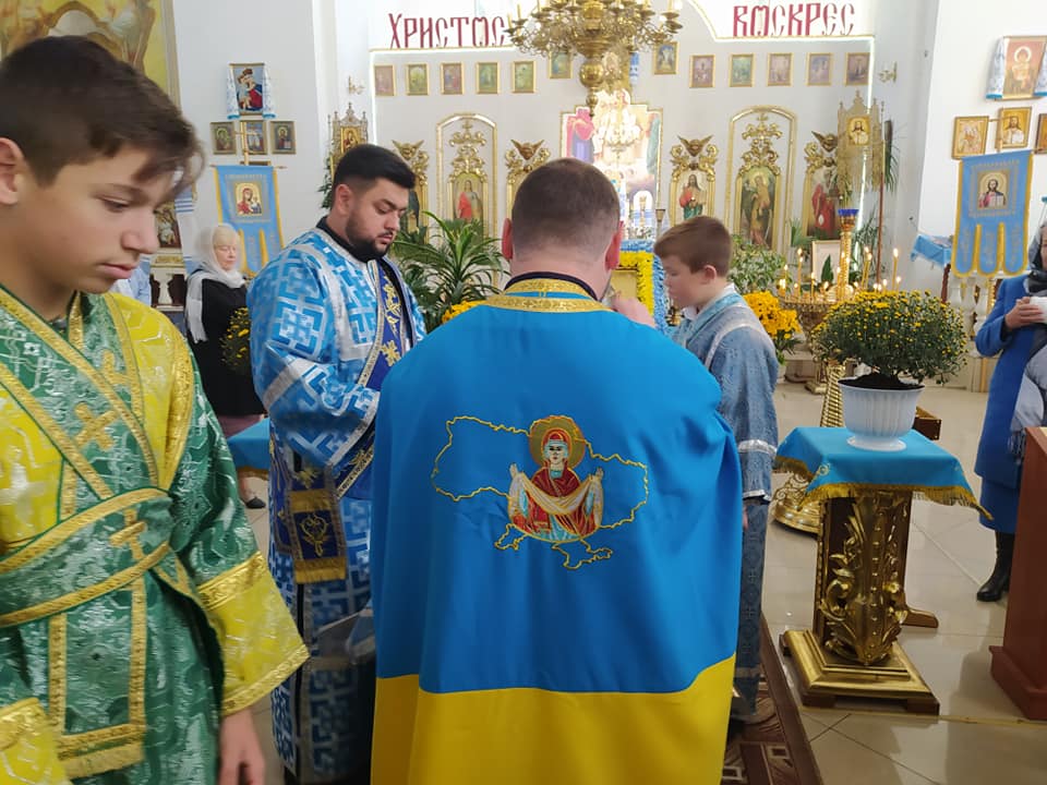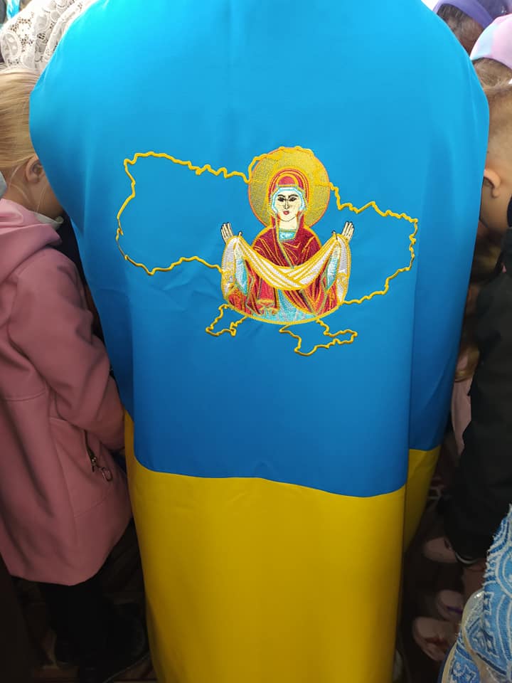 З нагоди свята Покрови Пресвятої Богородиці, 78-ої річниці створення Української повстанської армії (УПА 1942 р.), Дня Українського козацтва та Дня захисника України, намісник Свято-Миколаївського чоловічого монастиря (ПЦУ) ігумен Меркурій (Бікіра) приємно здивував присутніх у храмі не лише проповіддю, а й своїми ризами. Чернець на святкове Богослужіння одягнув синьо-жовті ризи, де на спині вишита Україна, а по центру – Матір Божа тримає Покрову над нашою державою.