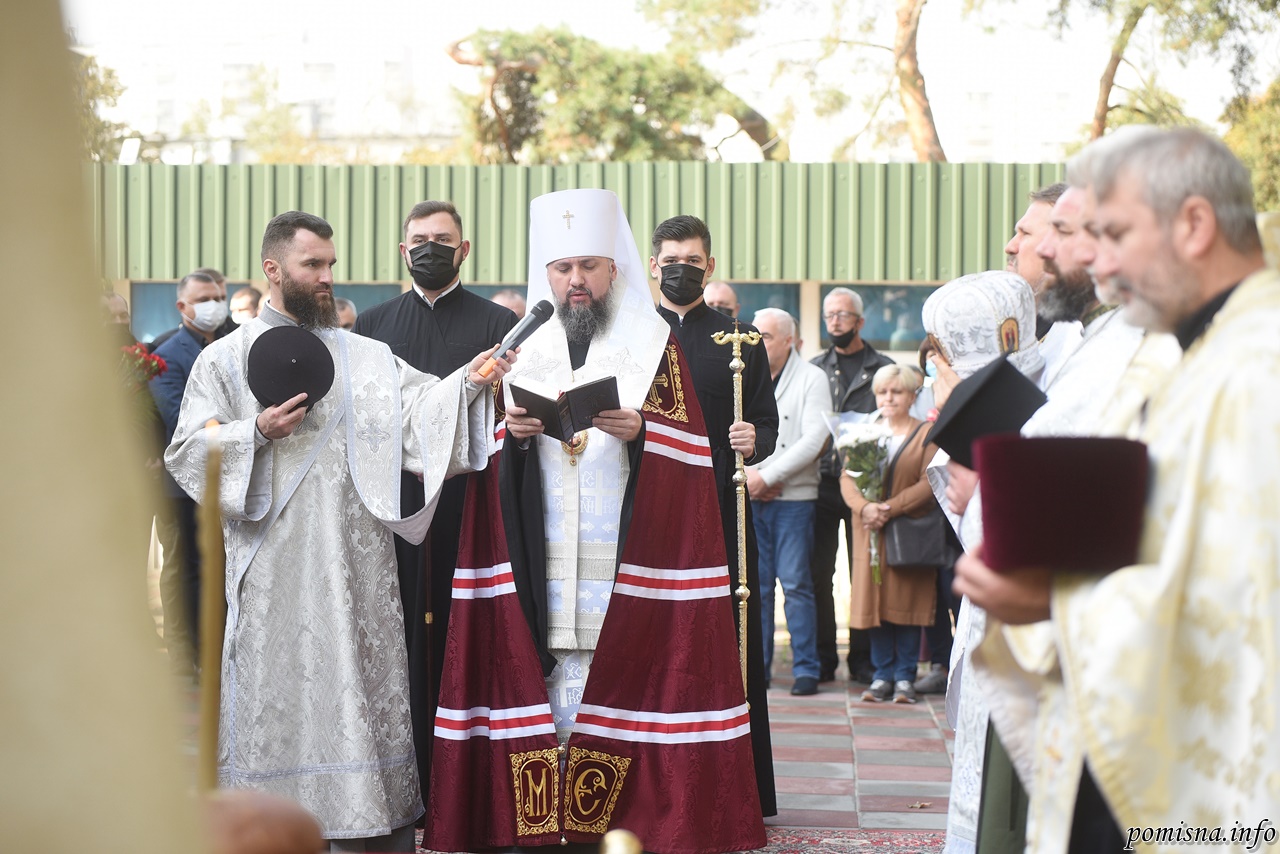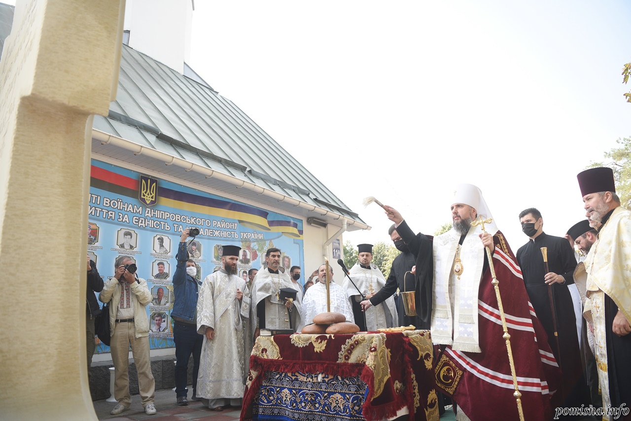 Напередодні Дня захисника України у одному з районів столиці предстоятель Православної Церкви України митрополит Епіфаній здійснив чин освячення хреста на честь воїнів, які віддали своє життя за єдність і незалежність України, та стіни пам’яті полеглим у російсько-українській війні мешканців району.