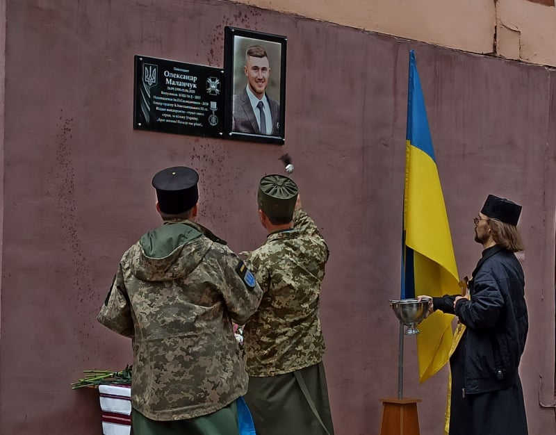 На стіні школи №2 Чернівців освятили меморіальну дошку, встановлену на честь загиблого героя Олександра Маланчука, який загинув 1 квітня 2020 року, виконуючи бойове завдання, повідомляє «Погляд» з посиланням на пресслужбу міськради Чернівців.