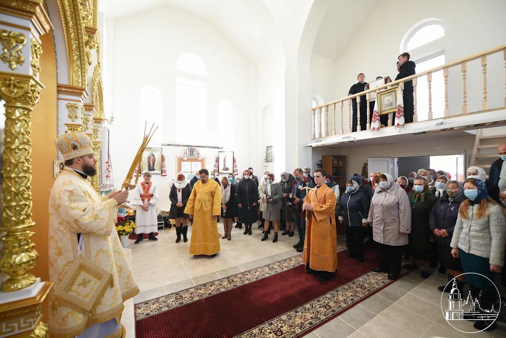 Під час Літургії лунала всеукраїнська молитва за припинення пошесті згубної епідемії коронавірусу. Після завершення Літургії архієпископ Агапіт звернувся до присутніх з повчальним словом, привітав отця-настоятеля та громаду села з історичною подією – освяченням храму, та з благословення Предстоятеля Православної Церкви України вручив церковні нагороди.