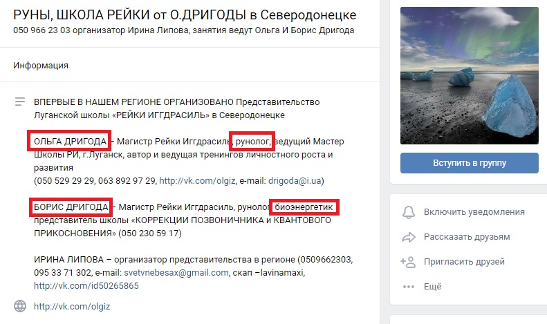 Доктор богослов’я Ольга Дрігода в 2013 році стала магістром окультної організації «Рейкі-Іггдрасиля», про що на сайті організації є офіційна інформація. Ще в 2017 році, як повідомляється в блозі Дрігоди, вона водила хороводи і стрибала через багаття на честь язичницьких богів.