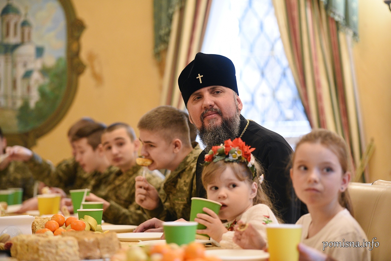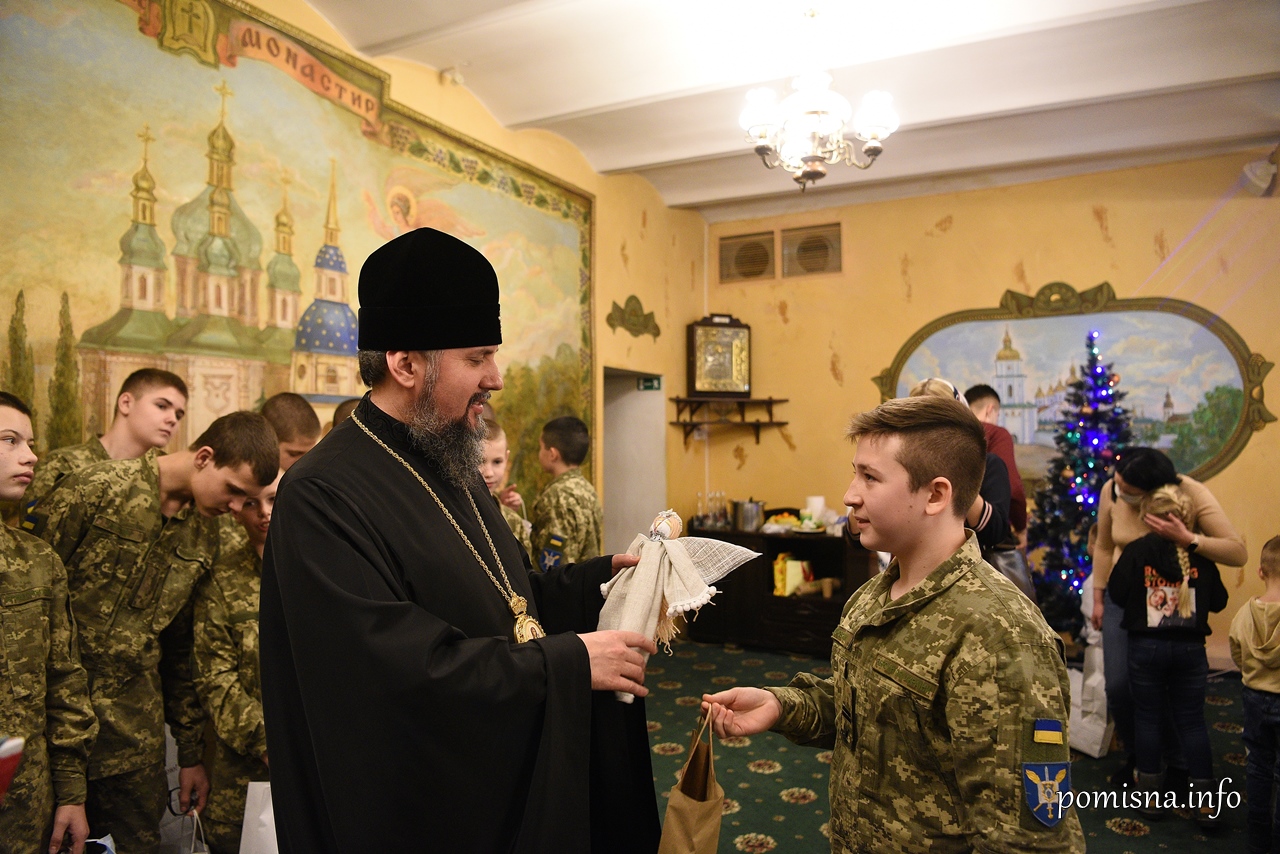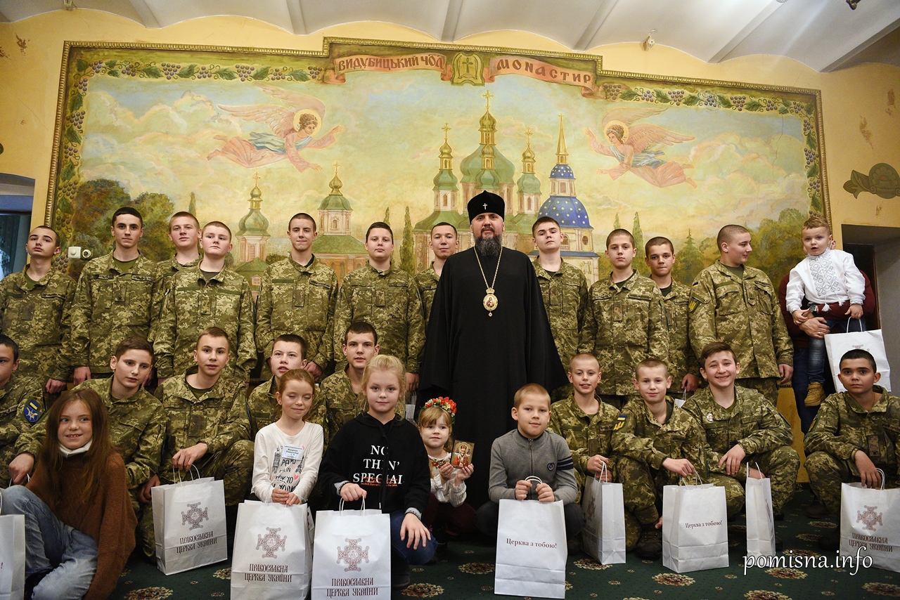 Предстоятель Православної Церкви України Митрополит Епіфаній напередодні дня cвятого Миколая у Видубицькому монастирі зустрівся з курсантами Навчально-оздоровчого Київського військового ліцею імені Івана Богуна, серед яких є діти полеглих Героїв, сироти, а також з дітьми-переселенцями з окупованого Криму.