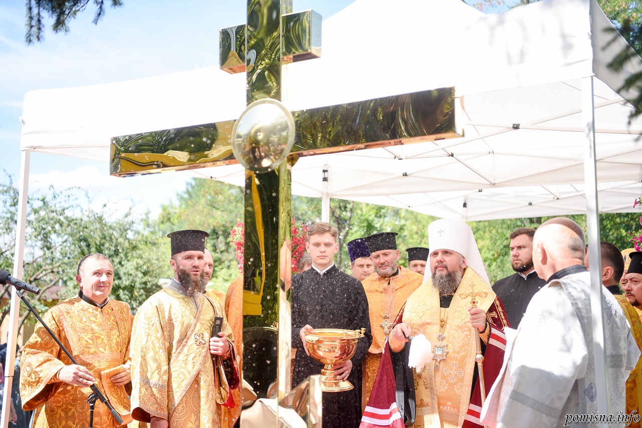 «Щойно ми звершили освячення хреста, який буде піднятий на баню цього новозбудованого храму. Чесне і Животворче Древо Хреста Господнього буде охороняти і захищати від всякого зла тих, хто звертатиметься в молитві до Бога у храмі святої мучениці Параскеви. Сьогодні це справді урочиста та історична мить для вашої громади, адже завершується ще один етап в побудові храму Божого, бо коли баня увінчується хрестом, то наступний і завершальний етап – освячення в ньому святого престолу. Господь є милостивим до нас і дає кожному можливість долучитися до такої великої і богоугодної справи, як побудова храму», – сказав митрополит Епіфаній.