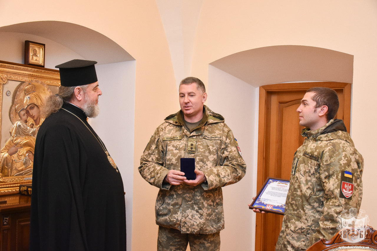 З нагоди Міжнародного дня волонтера, який відзначався в Україні та світі 5 грудня цього року, офіцери подякували єрарху за допомогу, яку Вінницько-Барська єпархія ПЦУ неодноразово надавала військовослужбовцям та мирним жителям у районі проведення АТО/ООС, та вручили йому медаль “За благодійну діяльність” та подяку Вінницько-Барській єпархії.