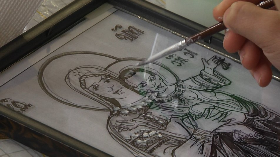 Спочатку проводять контур, потім виводять найсвітліші частини і потім поступово затемняють -, каже Інна Наумова. Усі кольори пишуться від світлого до темного в дзеркальному зображенні. Коли ікона готова, все складуть у фоторамку.