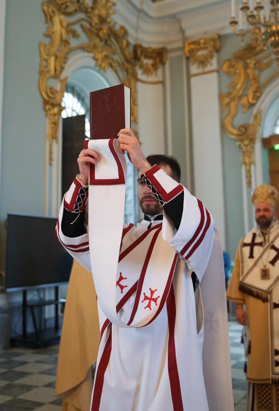 Крім цього, екзарх Вселенського патріарха прочитав Євангеліє про Закхея (Неділя 32) із нещодавно презентованого у Ставропігії богослужбового Євангелія-апракосу.