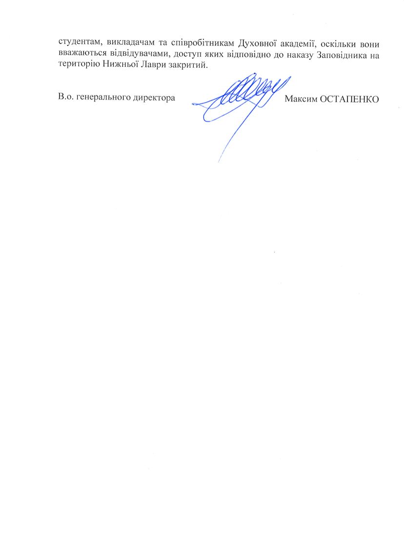 Судячи із опублікованого на сайті листа в.о. директора заповідника учні та викладачі прирівнюються адміністрацією до відвідувачів і не пропускатимуться на територію. Справа у тому, що заклади не мають юридичного права на користування державними приміщеннями, адже не укладали із заповідником жодних договорів. Попереднє ж використання здійснювалось з волі УПЦ (МП). Договір оренди з нею на даний момент втратив чинність і не є дійсним.