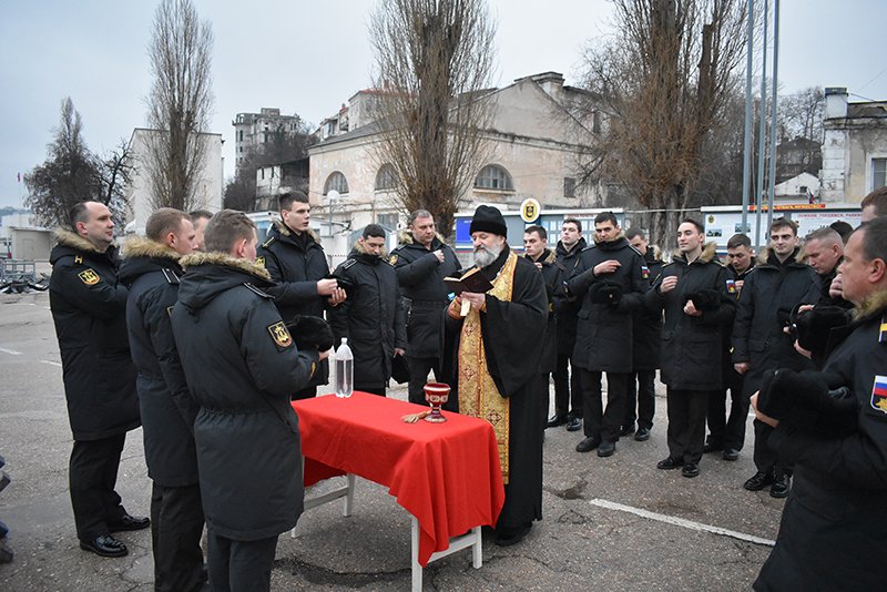 The same website reported that on the same day, February 15, Archpriest Serhiy Polyvtsev offered a prayer service for the crews of the enemy warships, which was a “blessing to a warship going at the enemy, one or many, and blessings to the soldiers who are set to man it.”